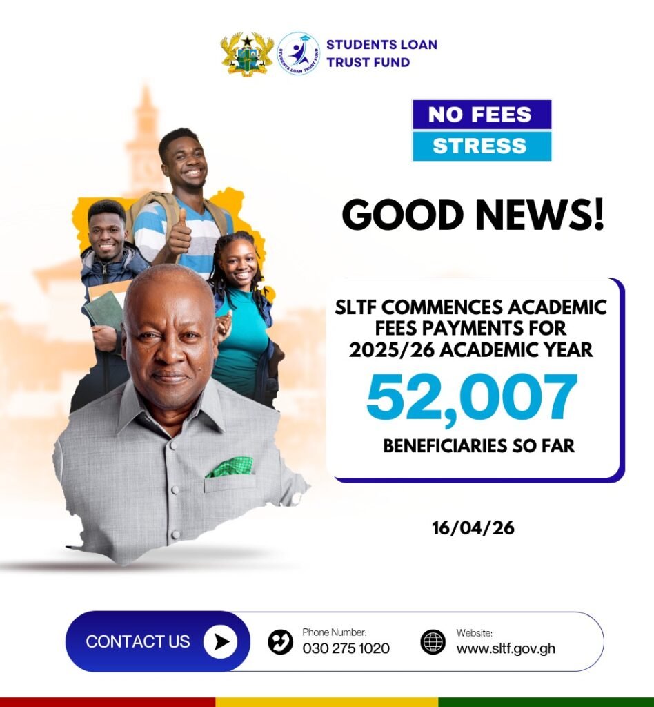 The Students Loan Trust Fund (SLTF) has commenced disbursements to eligible students across public tertiary institutions in Ghana under the Government’s flagship No Academic Fees policy for the 2025/2026 academic year.